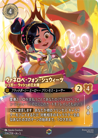 ディズニーロルカナ「星々の輝き」収録のカード、ヴァネロペ・フォン・シュウィーツ シュガー・ラッシュの王女様です。